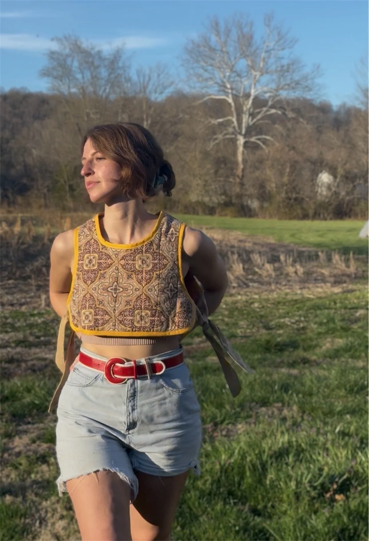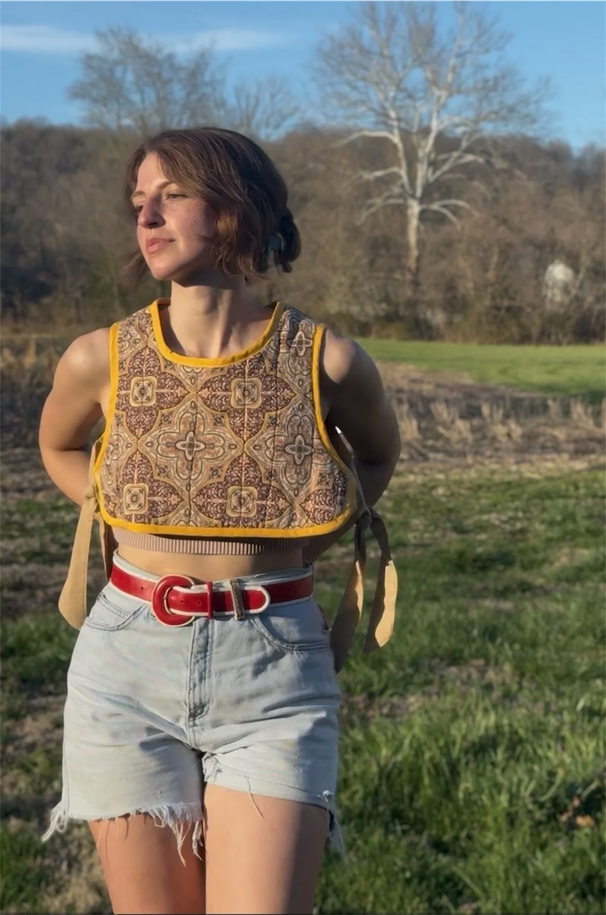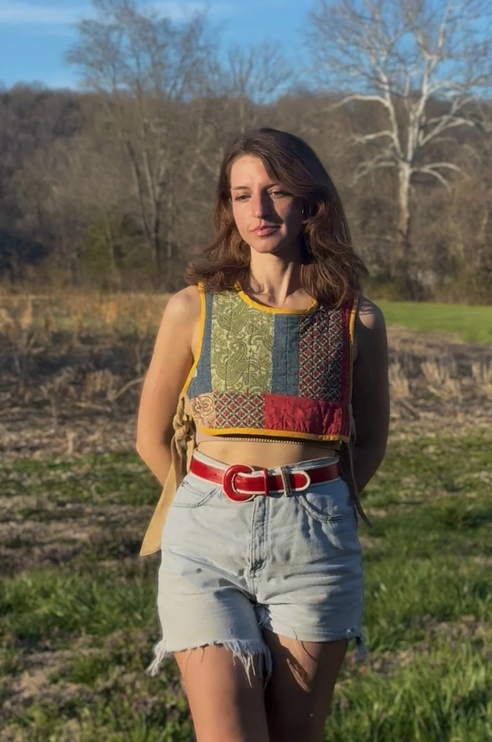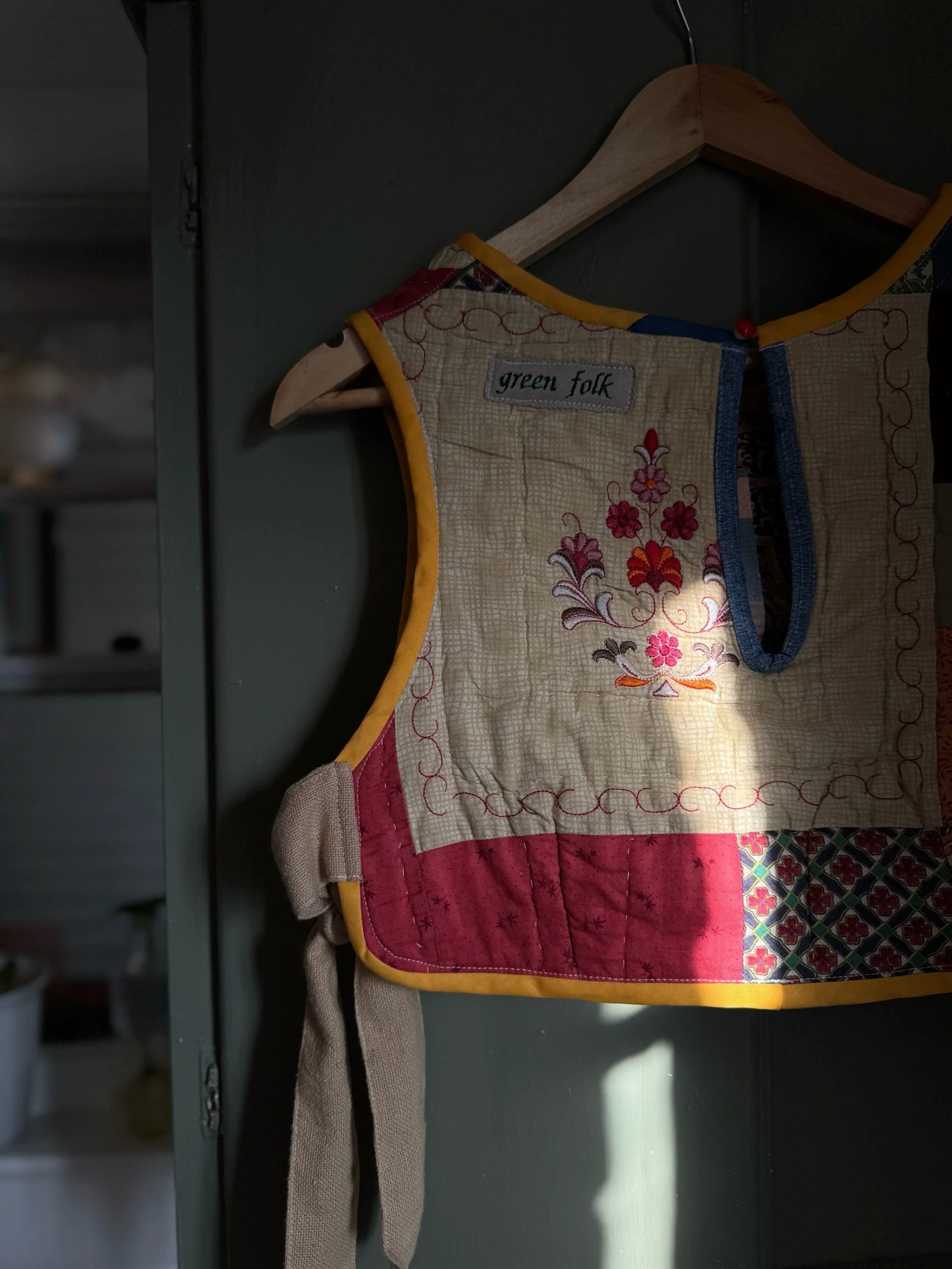 Constructed from a repurposed cotton quilt.
