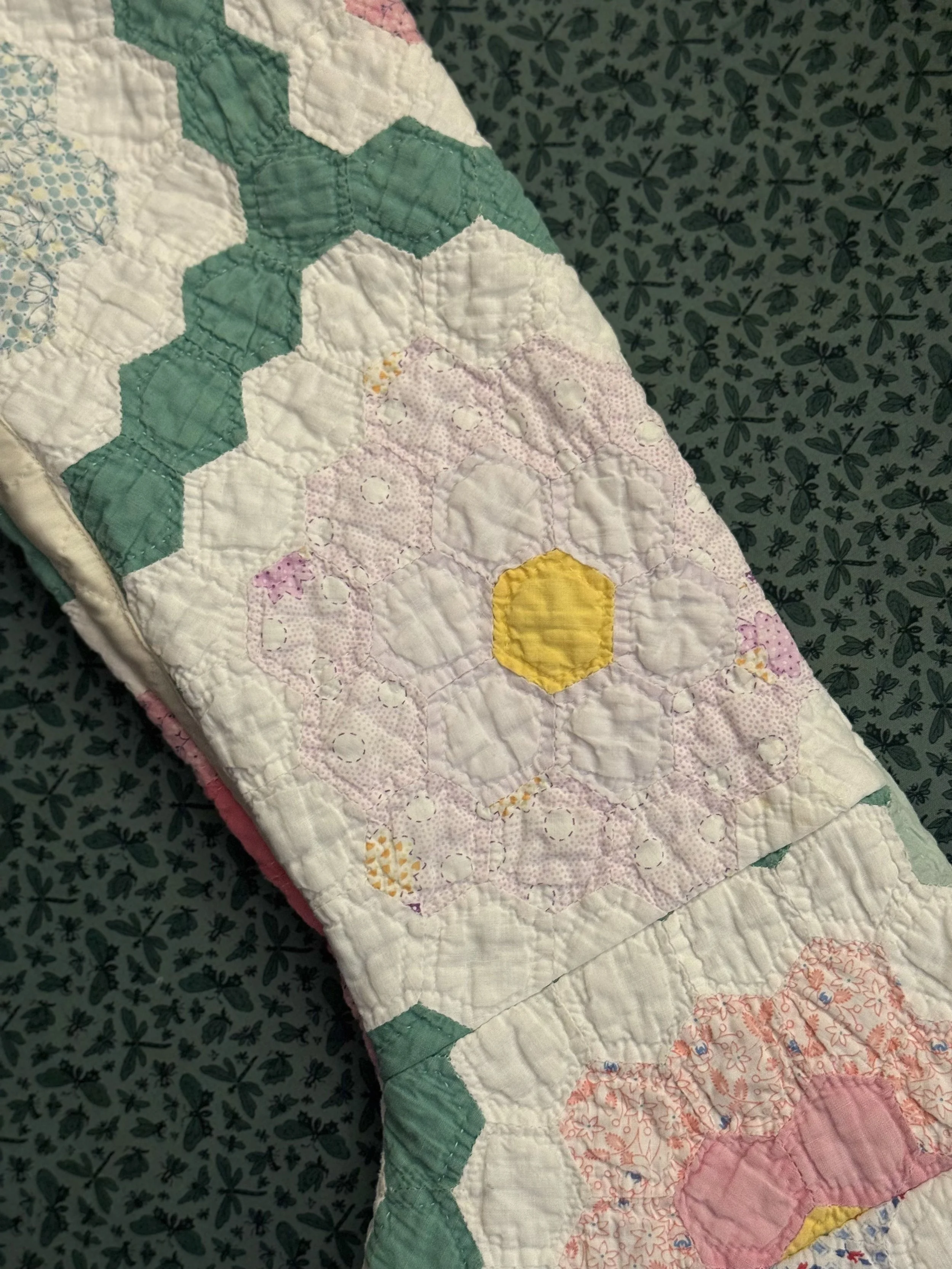 Sally sells quilt sea shells bags down by the Green Folk Shore.