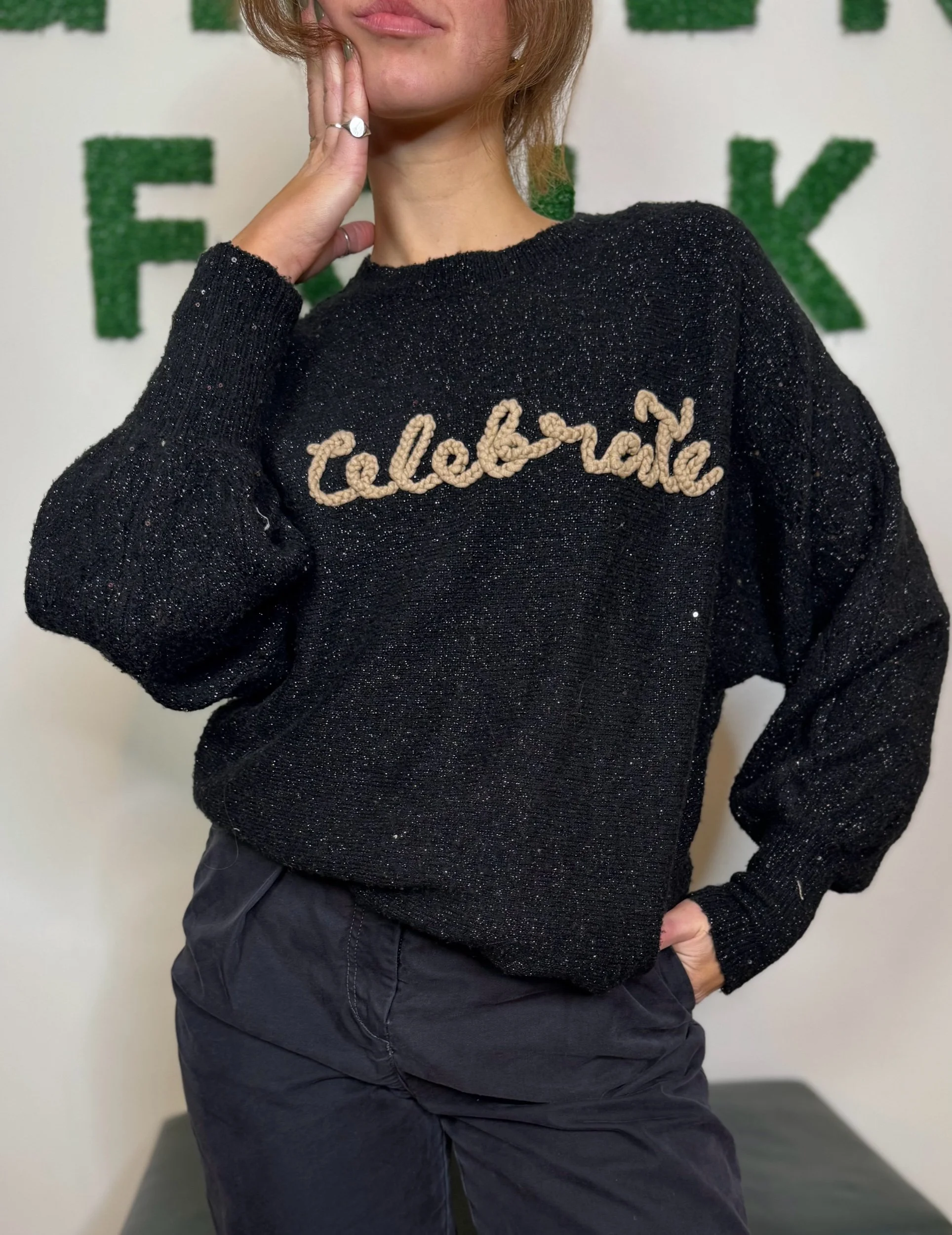 Sparkly ‘Celebrate’ Crochet lettering sweater (S)